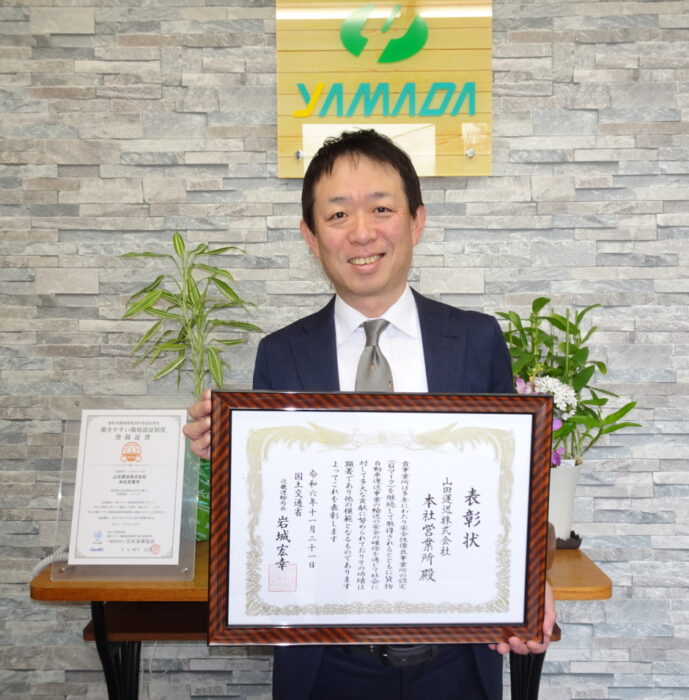 「環境に配慮した事業活動」では、現場で発生した廃棄物を自社で加工し、車両部品として再利用することや、LEDの導入や適切な空調管理、こまめな節電など省エネの徹底にも取り組む。「ワークライフバランスの実現」では、時短勤務など柔軟な勤務形態の導入や、資格取得支援など従業員のスキルアップをサポート。さらに、物流業界と地域社会の発展のために、「子ども110番の家」への登録や地元の小学校へのこども新聞の寄贈などにも取り組んでいる。