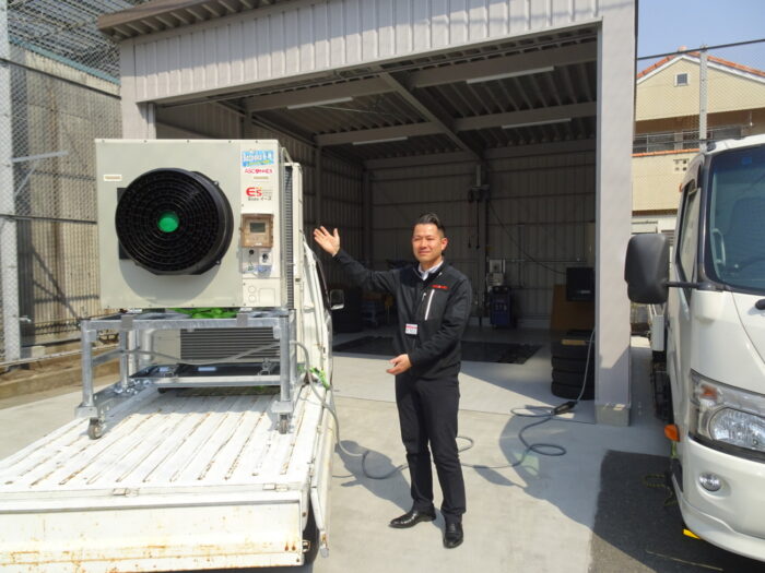 ウィルコム独自の通信モジュール「W-SIM(ウィルコムシム)」を内蔵することで、屋内・屋外を問わず通話、メール、データ通信が可能。「たとえば、外に出ているドライバーへの連絡をメールでの一斉同報で行えば、業務効率が大幅に向上するはず。また、カメラ機能も搭載しており、業務報告の連絡メールに画像を添付するといった使い方も可能」(事業促進部ビジネス開発グループの芥川直也グループリーダー、写真左)。