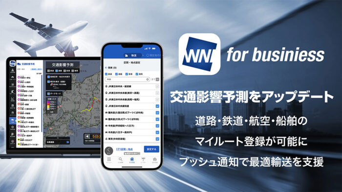 「天候の変化をいち早く正確に把握し、配送の見直しや配車に役立ててもらいたい」。ウェザーニューズ(石橋知博社長、千葉市美浜区)は、荒天時の交通への影響リスクをより迅速に把握してもらうため、企業向けのお天気アプリ「ウェザーニュース for business」の「交通影響予測」をアップデート、新たにマイルートや地点の登録とアラート通知の機能を追加した。