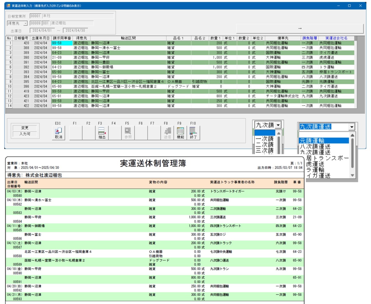 タイガー(茂岡賢明社長、東京都千代田区)はこのほど、運送業向け販売管理システム「トラックメイト」シリーズの新製品「同Pro5」を発売。4月1日に法制化された実運送体制管理簿の作成支援機能を搭載した。