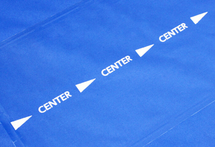 また、マルイチ製トラックシートの標準仕様として好評を博しているのが「センターマーク」の印字サービスだ。シートの前後2か所に無料で印刷しており、「この目印があるだけで、センターの位置が分かりやすくなり、シート着脱作業の負担が軽減される」という。