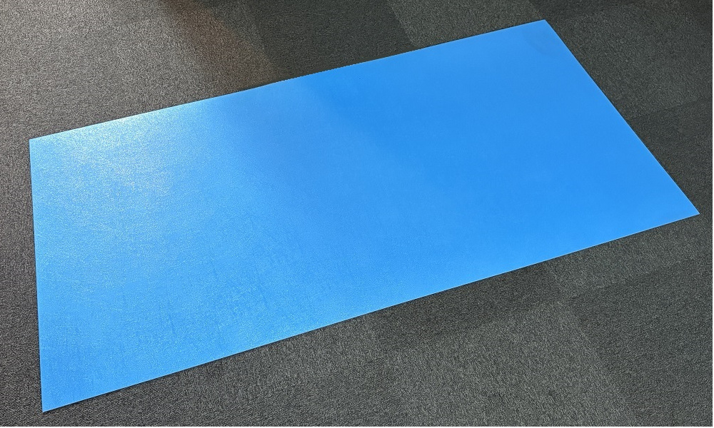 同担当者は、「青ベニヤには、バージン材を使った発泡タイプと、再生材を使ったソリッド(無垢)タイプの2種類があり、当社の青ベニヤは再生材を使用していない前者のタイプ」と説明。「当製品は、高品質なポリプロピレンのバージン材を1.3倍に発泡させて製作している。折り曲げ強度が高く、曲げて割れるということも少ないため、扱いやすい養生板として大変好評を博している」と胸を張る。