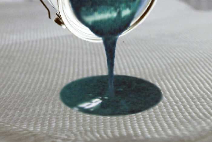 「海外製ターポリンのように樹脂が厚いと、プレスの際に熱が芯まで伝わりにくいため、表面の樹脂同士しか溶着されず、簡単に剥がれてしまう。一方で、適度な樹脂厚の国産ブランドターポリンは、熱が芯まで伝わり、上質なキバタと樹脂が強力に溶着されるため、溶着面の強度が抜群」と強調する。