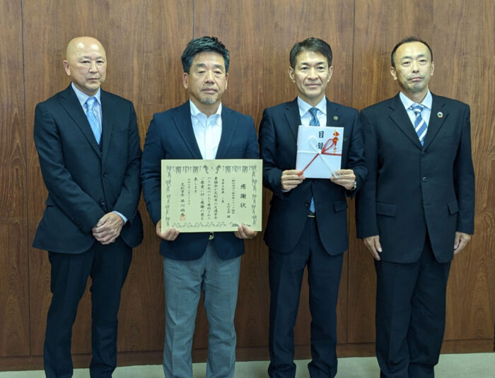 足利支部では、望月支部長就任後の6年前から毎年、カーブミラーの寄贈を実施。今年の2基で合計10基が市内の危険箇所に設置された。望月支部長は「カーブミラー100基の設置を目指して継続していきたい」と話す。また、早川市長は「熱心な事故防止の活動と寄贈に心から感謝している」と述べ、望月支部長に感謝状を渡した。