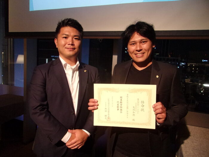 関東軽貨物協会はこれまで、代表幹事が不在のまま全国軽貨物協会の西田代表理事が代行してきたが今回、正式な代表幹事任命式が執り行われ、トランプ(埼玉県川口市)の矢作和徳社長が就任した。