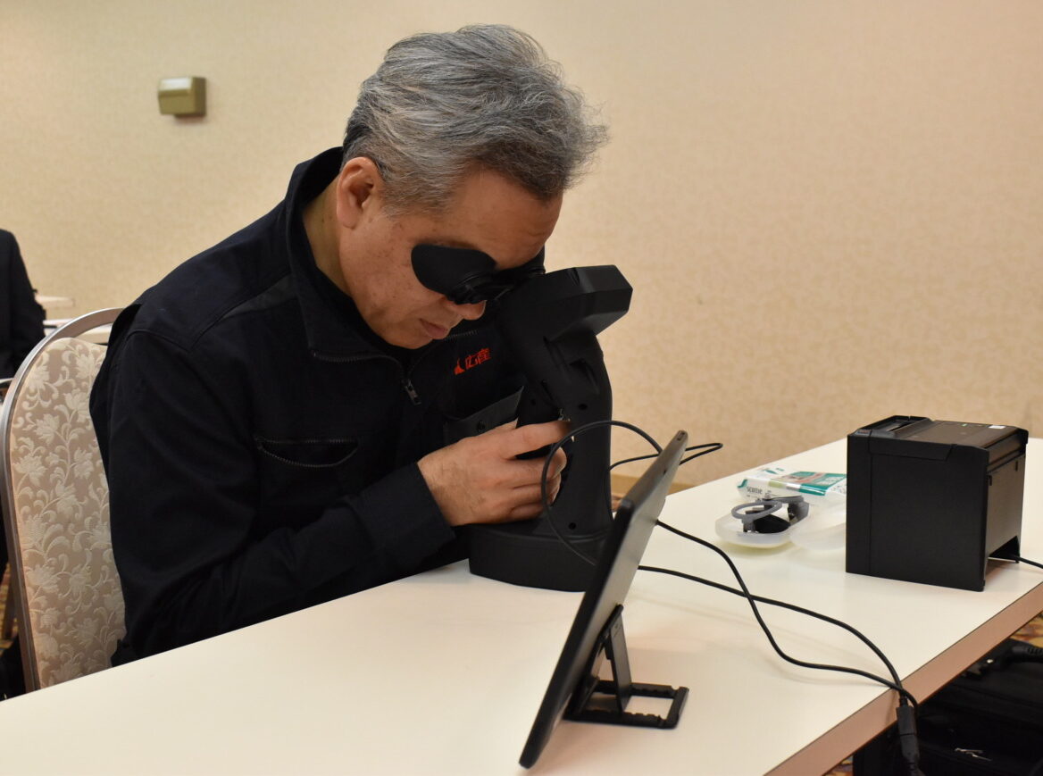 受講者が自身の視野や見え方を試した同装置は医療機器ではないものの、運輸事業者や薬局などが入れるケースが増えているという。高橋氏は「眼病は自覚症状が出た時には進行している。血圧計のようなイメージで定期的にチェックすると、眼病の早期発見につながる」と受講者に話していた。